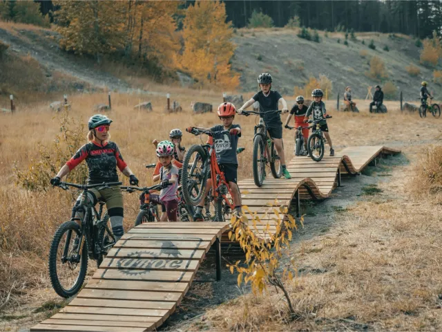 Kid's Corner and Skills Park is a family-friendly attraction for kids of all ages. This dynamic fun zone is conveniently located at the base of Pass Powder Keg ski hill in Blairmore. It is within walking distance to the restaurants, coffee shops and shopping in the heart of Blairmore. There is plenty of parking, washrooms, a picnic area, and unlimited bike fun. Kid’s Corner is an initiative to create kid-friendly trails with the opportunity for skills progression and also incorporate some local mining history. A partnership was formed with the United Riders of Crowsnest (UROC) and the Crowsnest Museum, so along the trail, you can find pieces of mining history and interpretive signs. But most of all, this is a trail network of fast berms, rolling single track, bridges, jumps, stunts and fun, fun, fun! Just west of Kid’s Corner is the Skills Park. A great family-friendly destination. You will find many skill-testing features, including progressive jumps, progressive wooden drops, skinnies and a pump track. There is also a shelter, picnic tables, washrooms and bike tools. This is a great zone for a family to hang out and play. After everyone had conquered Kid’s Corner and the Skills Park there are more fun and challenging riding trails on Pass PowderKeg.It’s the perfect way for a family to spend a day!