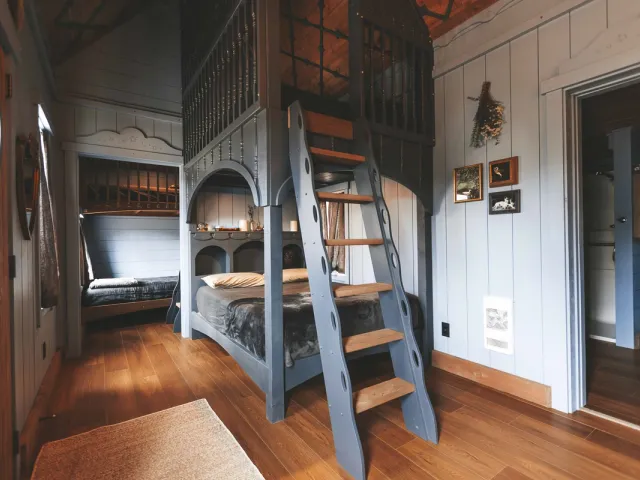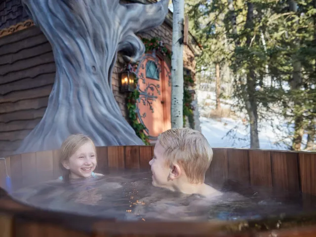 Charmed Resorts is a passion project that stems from a family business. The Leavitts spent five years designing custom luxury playhouses before launching Charmed Resorts. The original location in the Crowsnest Pass features themed cottages that put guests into fairytale surroundings. Let your hair down in Rapunzel’s Cottage or celebrate Shakespeare in the Midsummer Cottage. The Gingerbread Cottage is perfect if you enjoy the darker side of fairytales or Belle's Cottage if you prefer happily-ever-after. The Lost Boys’ Treehouse lets you drift off to dreamland while staying in Neverland. The Crowsnest Pass location puts guests close to downhill and cross-country skiing during winter and hiking and biking trails during summer. Charmed Resorts will be opening a new location in Mulhurst Bay in 2025, about 86 km (53 mi) southwest of Edmonton.